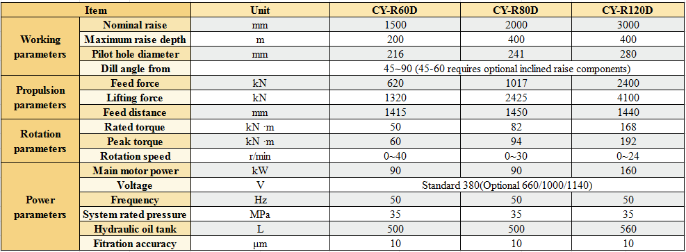 The rail wheel type raise boring machine is suitable for raise channeling in underground mines with rails,covering nominal raise diameters ranging from 1.5 to 4m and reaching a maximum raise depth of 400m.